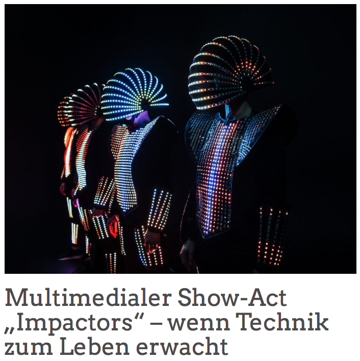 Ich drücke auf den Playbutton eines Videos und bin ganz gespannt. Denn in den nächsten Sekunden erwartet mich ein Einblick in den neuen, multimedialen Show-Act der Sanostra GmbH aus Köln. Sie nennen den neuen Act „Impactors“. Und schon mit den ersten Tönen und Lichteffekten spüre ich, wie sich Gänsehaut auf meinen Armen breitmacht. Was ich hier sehe, ist definitiv nicht „einfach nur“ ein perfektes technisches Zusammenspiel. Dieser Act ist eine lebendige Komposition – mit einer Dimensionalität, die mich wirklich am Bildschirm fesselt. HIER GEHTS WEITER ZUM BLOG ARTIKEL